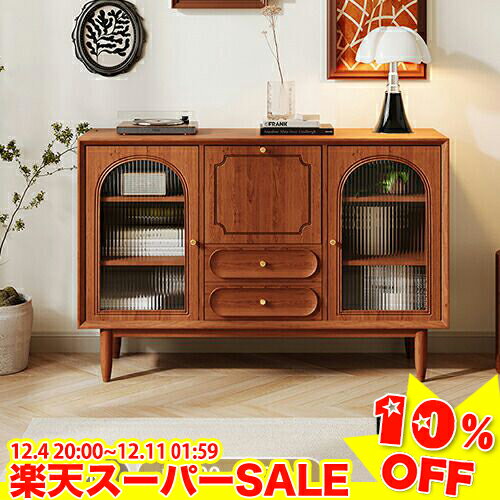 \楽天スーパーSALE★10%OFF/キャビネット 北欧 おしゃれ 引き出し 扉付き 収納棚 チェスト リビングキャビネット リビングボード アンティーク 木製 棚 収納 大容量 本棚 サイドボード サイドチェスト 収納ラック 脚付き ガラス扉付き 書棚 ブラック ブラウン
