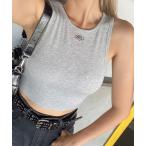 タンクトップ ノースリーブ ロゴ刺繍リブタンクトップ レディース