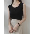 tシャツ ボタンネックリブタンクトップ / ブラック レディース