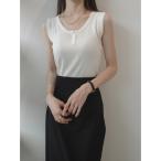 tシャツ ボタンネックリブタンクトップ / アイボリー レディース