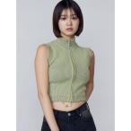 タンクトップ ノースリーブ ダブルカラーリブニットタンク レディース