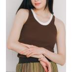 タンクトップ ノースリーブ チュールトリムリブタンクトップ レディース