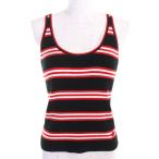 極美品△CHANEL シャネル P77660 コットン カシミヤ ココマークパーツ ボーダー柄 リブタンクトップ ブラック レッド ホワイト 40 仏製