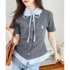 ブラウス シャツ 「Ada.別注 U.S. POLO ASSN」リボン タイ 付き 半袖 ブラウス レディース