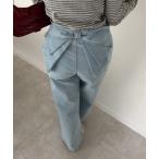 ジーンズ デニム デニムパンツ 後リボンストレートデニム レディース