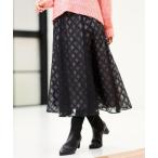 スカート 「R‐QUALITY/ウエストリボン付き」フラワー柄シアーフレアスカート