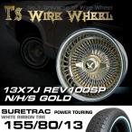 ワイヤーホイール T’s WIRE 13X7J STD100SP トリプルゴールド シュアトラックホワイトリボンタイヤセット (ローライダー USDM)