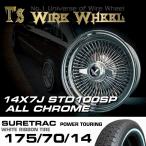ワイヤーホイール T's WIRE 14X7J STD100SP オールクローム シュアトラックホワイトリボンタイヤセット (ローライダー USDM)