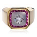 メンズリング 印台 18金 指輪 K18 18k プラチナ ルビー ダイヤモンド 男性 幅広 ごつい 30代 40代 50代 爆買