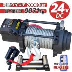 お買い得フェア DC24V 電動ウインチ 20000LBS(最大牽引力 (9071kg) 無線リモコン付き ワイヤー径約12mm クラッチ機構付き /引上げ機 けん引 防水仕様