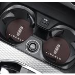 ★リンカーン Lincoln★モカブラウン★車用 カップパッド ドリンクホルダー コースター 専車ロゴ ロゴ入り 丸型 車用ノンスリップ レザー 2枚セット aafr qtm