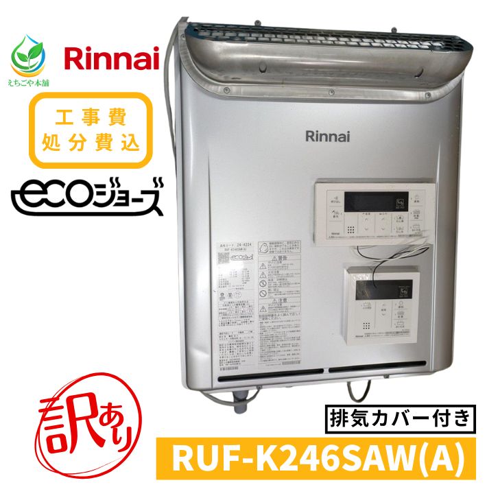 【楽天スーパーセール 10%OFF】工事費込み 中古 ガス給湯器 リンナイ Rinnai エコジョーズ RUF-K246SAW(A) 排気カバー付き リモコン付き 処分費込み 24号 壁掛け オート 都市ガス 工事費込 ガスふろ給湯器 追い焚き 4〜5人家族向け 住宅設備用モデル 訳あり アウトレット品