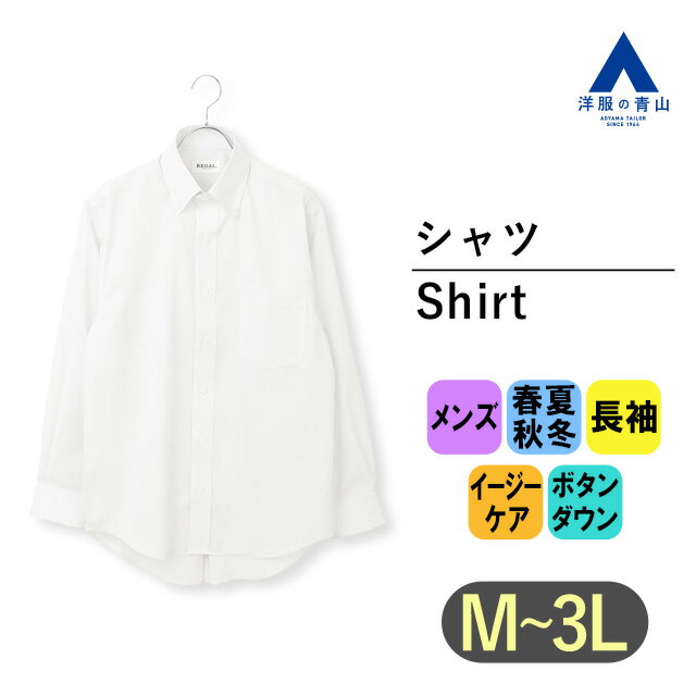 【洋服の青山】EASY CARE 簡単アイロン 長袖 カジュアルシャツ メンズ オールシーズン ホワイト 白 ボタンダウン ウォッシャブル 洗える 春夏 秋冬 トップス 普段着 ワイシャツ Yシャツ カッターシャツ 男性 かっこいい おしゃれ リーガル REGAL