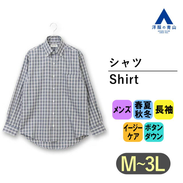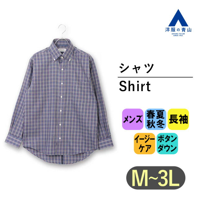 【洋服の青山】EASY CARE 簡単アイロン 長袖 カジュアルシャツ メンズ オールシーズン ブルー チェック ボタンダウン ウォッシャブル 洗える 春夏 秋冬 トップス 普段着 ワイシャツ Yシャツ カッターシャツ 男性 かっこいい おしゃれ リーガル REGAL