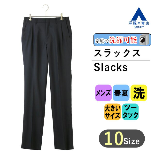 【洋服の青山】春夏 ネイビー系 スタンダードスラックス【ツータック】 REGAL メンズ ビジネス カジュアル ウォッシャブル シワ抑制 アジャスター 大きいサイズ おしゃれ かっこいい 無地 普段履き