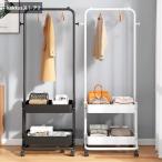 ハンガーラック スリム 引き出し付き 2段式 ポールハンガー 棚付き キャスター付き トローリーハンガー コートハンガー パイプハンガー 洋服ラック コンパクト