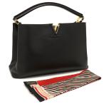 美品 ルイヴィトン カプシーヌMM M48864 トリヨンレザー ノワール ハンドバッグ スカーフ バンドー M75854