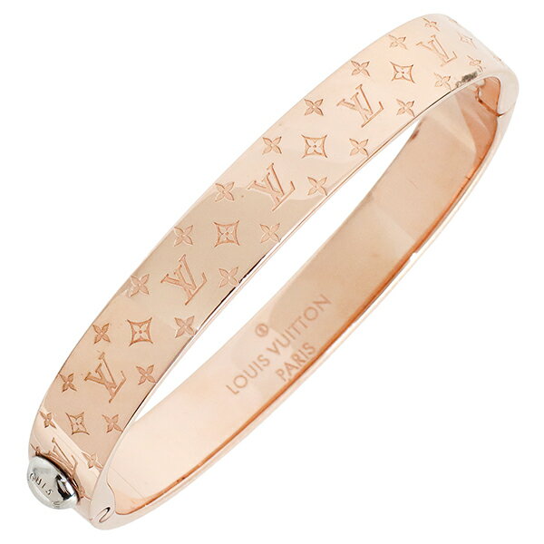【美品】 ルイヴィトン ブレスレット カフ ナノグラム Mサイズ モノグラム GP メタル ローズゴールド LVロゴ LOUIS VUITTON ルイヴィトン バングル レディース ピンクゴールド 腕輪 アクセサリー Bracelet ブランド 中古