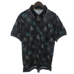 ルコックスポルティフ le coq sportif ポロシャツ 半袖 ロゴ 総柄 ゴルフ 黒 ブラック L メンズ