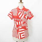 ルコックスポルティフ le coq sportif ゴルフ スポーツウエア シャツ ポロシャツ 半袖 総柄 速乾 赤 白 レッド ホワイト L レディース