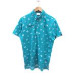 ルコックスポルティフ le coq sportif ポロシャツ 総柄 半袖 L 青 ブルー 白 ホワイト 黒 ブラック /MS メンズ