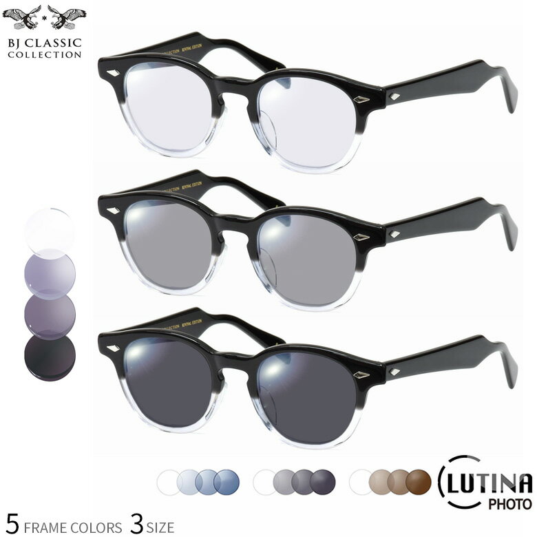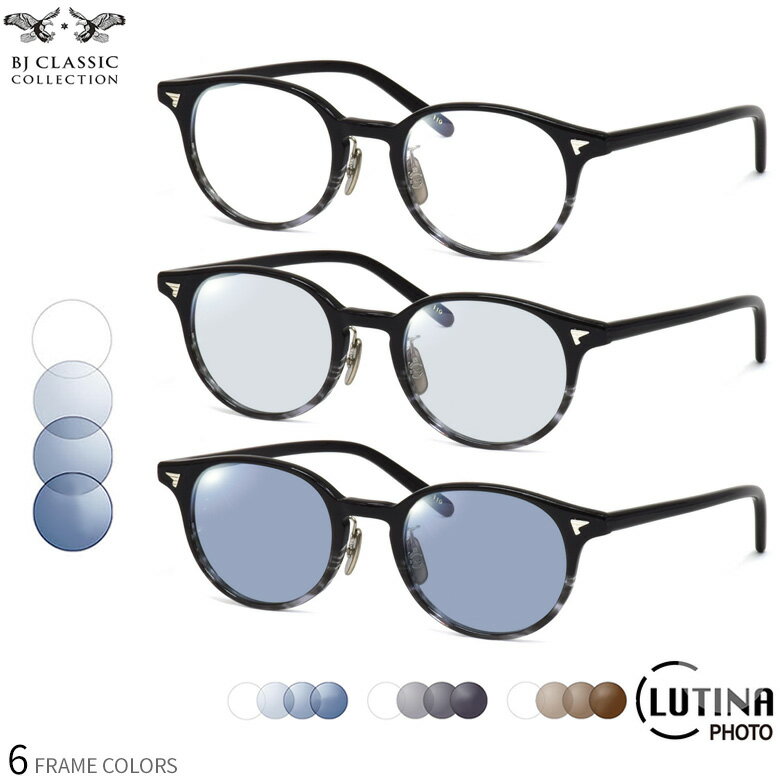 BJクラシックコレクション BJ JAZZ 44サイズ 46サイズ 48サイズ ルティーナフォト サングラス 度付き 色が変わる 調光 ブルーライトカットレンズ 眼精疲労予防 HEVカット LUTINA PHOTO スマホ用 PCメガネ UVカット 紫外線カット BJ CLASSIC COLLECTION [OS]