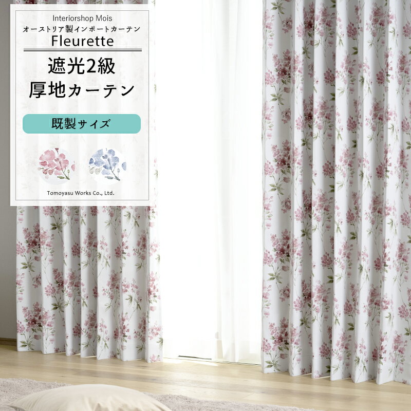 [スーパーセール10%OFF!]カーテン 既製サイズ 幅100cm 丈135cm 178cm 200cmの3サイズから選べる 【YH839】 フルレット [2枚組] おしゃれ 遮光2級 花柄 小花 ピンク ブルー かわいい OKC4