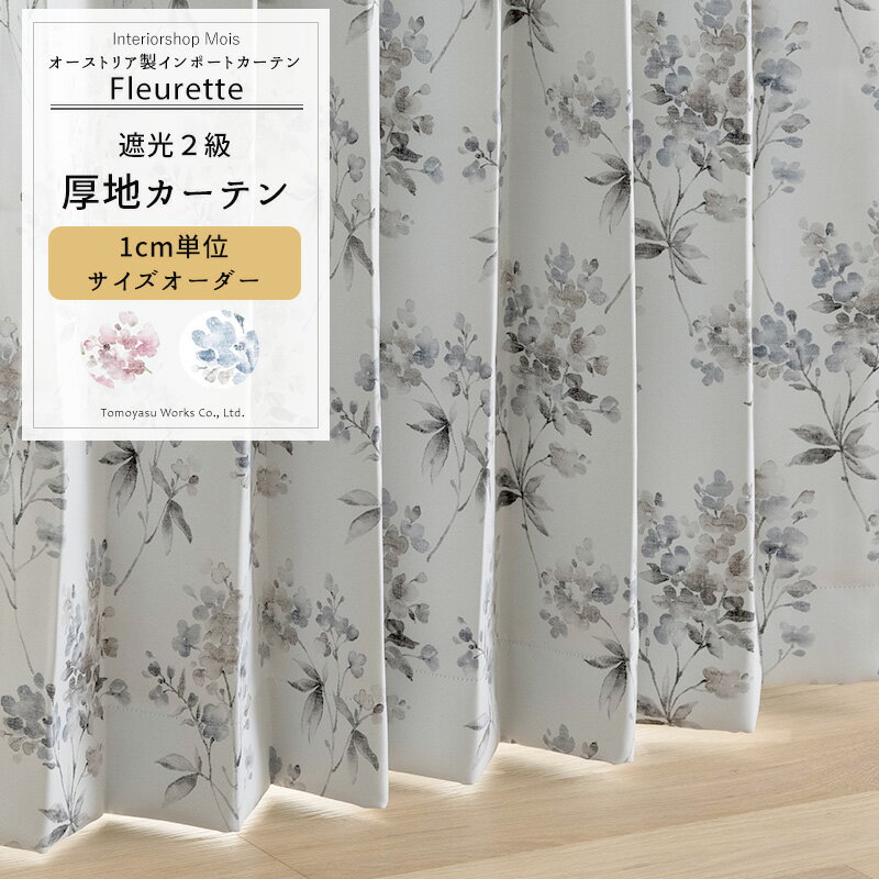 [スーパーセール10%OFF!]カーテン サイズオーダー 幅50〜300cm 丈50〜260cm 【YH839】 フルレット [1枚] おしゃれ 遮光2級 花柄 小花 ピンク ブルー かわいい OKC5
