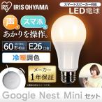 LED電球 E26 60W 電球 LED アイリスオーヤマ おしゃれ スピーカー 広配光 60形相当 冷暖調色 AI ライト LDA9D/L-G/D-86AITG+Google Nest Mini 安心延長保証対象