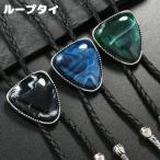 ループタイ ボロタイ ナチュラル オニキス ビッグ ストーン トライアングル 逆三角 ペンダント 紳士用 ジュエリー メンズアクセサリー 革紐付き ロープタイ ロック付き グリーン ブラウン 2色 送料無料 敬老の日
