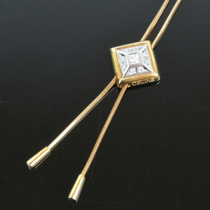 【中古】正規品 CELINE セリーヌ 0.21Ct ダイヤモンド Pt900 K18 18金 スネークチェーン スライダーネックレス ループタイネックレス 18.9g【送料無料】