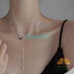 Y字ネックレス レディース 女性 アクセサリー 首飾り ファッション雑貨 ループタイ風 ラウンド リング型 丸形 バトン チェーン シルバーカラー ブ