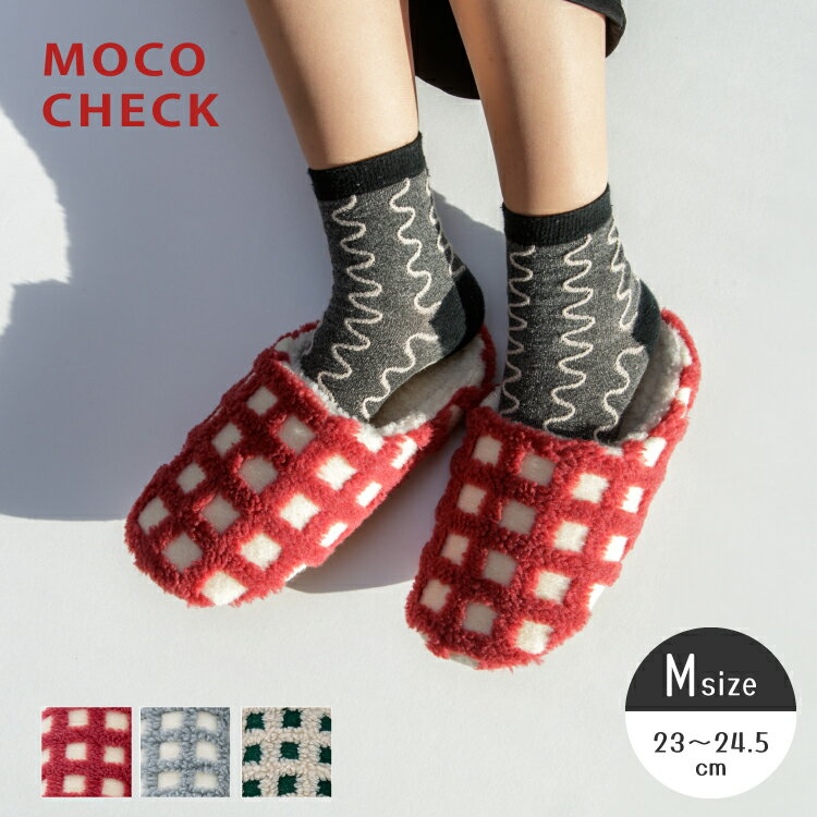 【11月30日5%OFFクーポン】ルームシューズ スリッパ 冬用 / ルームシューズ モコチェック 全3色 / 23-24.5cm レッド グレー グリーン チェック ボア もこもこ あったかい 滑り止め付 室内履き プレゼント おしゃれ ビスク