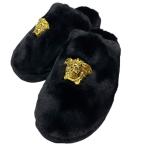未使用 ヴェルサーチェ スリッパ ルームシューズ メデューサ フェイクファー ブラック [サイズ41(約26cm)] VERSACE