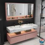 洗面台 ダブルシンク洗面化粧台 フローティングバスルームバニティミラーキャビネット LED 照明 防曇スマート 壁掛け 収納 ロッカー付 シンク