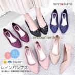 ラバーシューズ レディース レインシューズ 軽量 雨晴兼用 耐水性 レインパンプス ポインテッドトゥ フラット 履きやすい 防水 梅雨対策 カジュアル おしゃれ