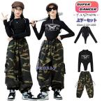 キッズ ダンス衣装 黒 トップス 女の子 ヒップホップ セットアップ ダンス キッズ パンツ カーゴパンツ レオタード 長袖 Tシャツ 中高生 ジャズダ