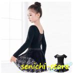 バレエ レオタード ジュニア 子供 レース スカート付き2点セット 黒 半袖 長袖 綿 コットン おしゃれ バレエレオタード レッスン着 練習着