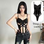 セクシーランジェリー レオタード ボディスーツ テディ エナメル調 レディース 女性 水着風 コスチューム コスプレ ハイレグ タイト フィット ボデ