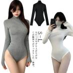 オールインワン Tシャツ 無地 つなぎ レディース リブニット ボディブリファー インナー タートルネック 冬 レオタード 肌着 長袖 カットソー