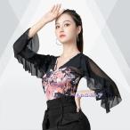 ラテンダンス トップス レオタード式 社交ダンス衣装 トップス フレアスリーブ 上着 競技着 モダンラテンダンス用 ダンスウェア