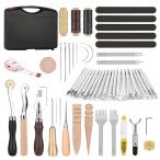 サムコス レザークラフト 革工具セット 収納ボックス付 裁縫工具 皮革工具 針 手作り 革用 レザー 紐 ワックス糸 手縫い 工具 DIY 縫製キッ