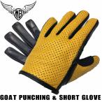 送料無料【HEAVY】 サマーグローブ バイク 山羊革パンチングメッシュ ショートグローブ 夏用 穴あき スマホタッチ対応 キャメル HGG-03P-CAM
