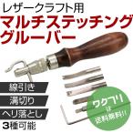 レザークラフト 道具 セット 工具 マルチステッチング グルーバー 1本5役 線引き 溝切り ヘリ落とし 3種セット 初心者 でも 安心 DIY