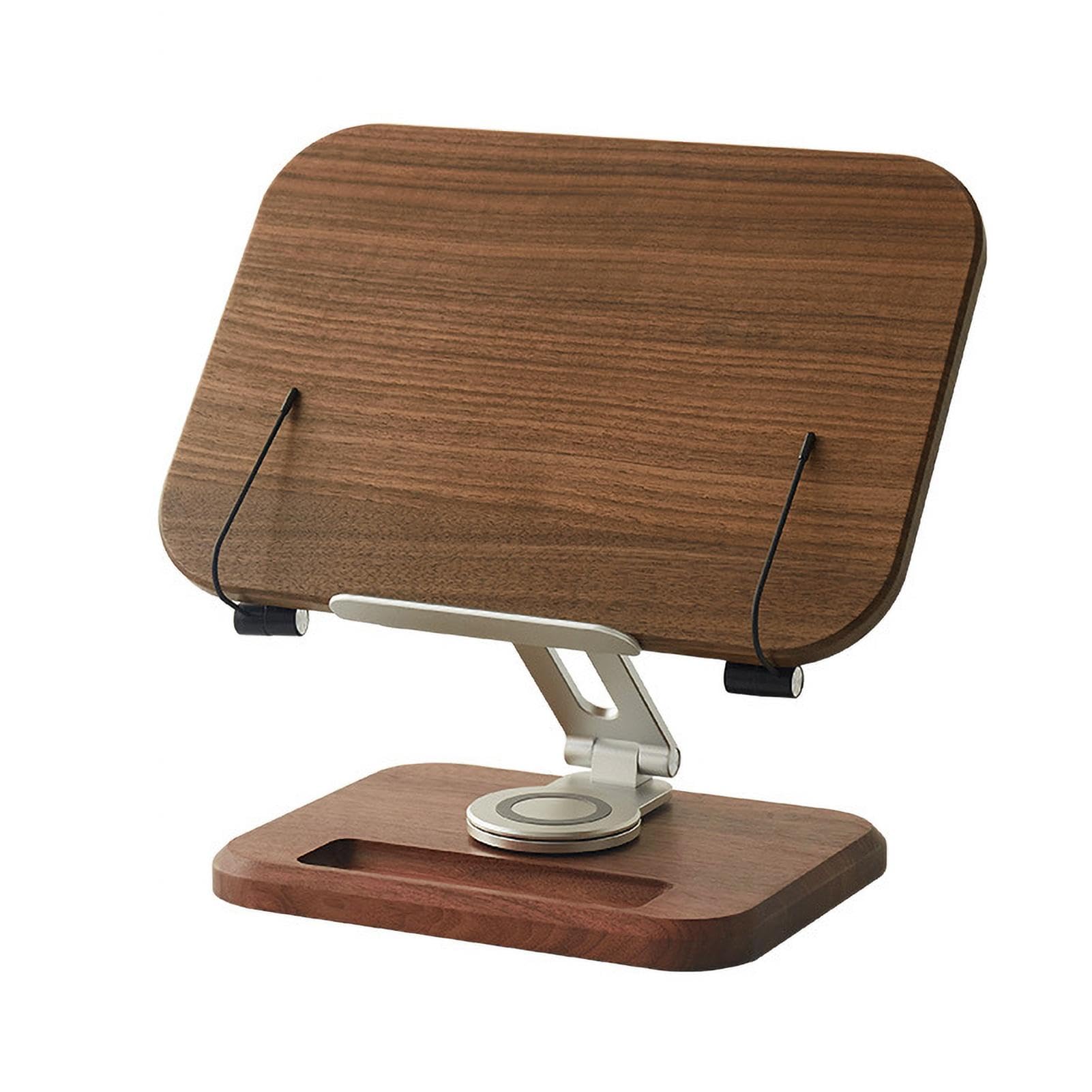 調節可能なブックスタンド - 読書用の調節可能なブックホルダー、高さの角度調節可能な木製ブックスタンド、ページクリップ付き、タブレット用の頑丈なアルミニウムフレーム、レシピ。