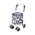ブレーキ付 アルミワイヤーカート 花柄青 ユーバ産業 ボックスタイプ シルバーカー カート