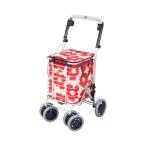 ユーバ産業 アルミワイヤーカート ブレーキ付き 花柄赤 高齢者向け ショッピングカート A-0245H