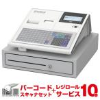 【セット商品】【店名・メニュー設定込み】レジスター 東芝テック FS-700-R ホワイト+スキャナー(HS-580-U-24S)+台座(HS-580-ST) レジロール10巻付