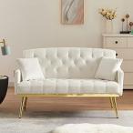 【並行輸入品】Antetek 布張り ベルベット ラブシート、モダンな小さなソファ サイドポケットと金色の金属製の脚 タフテッド レジャーソファ