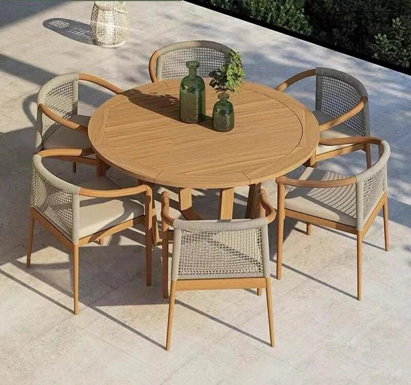 戸外の柚木のテーブルと椅子のハイエンド別荘の庭の食事のテーブルと椅子の組み合わせガーデン防水日焼け防止のレジャーの籐の椅子の丸いテーブル